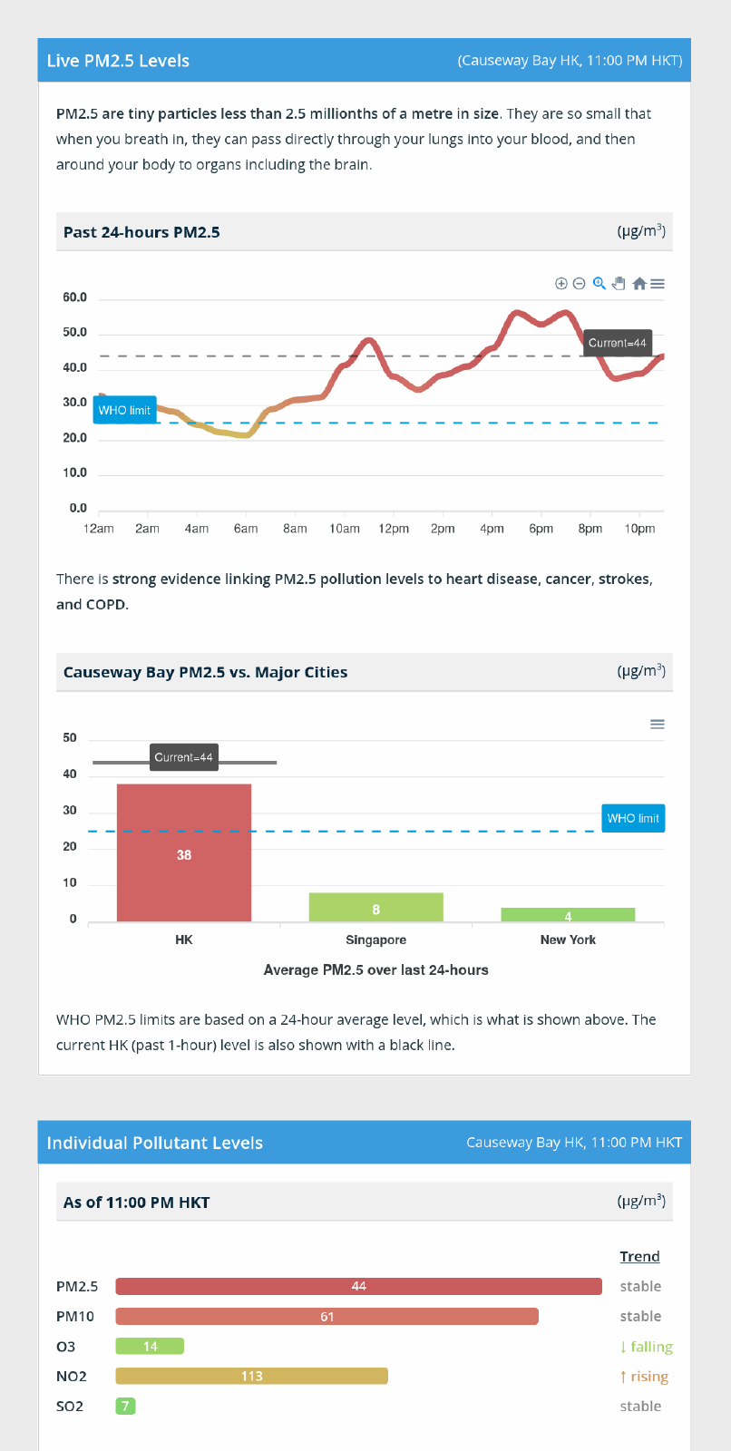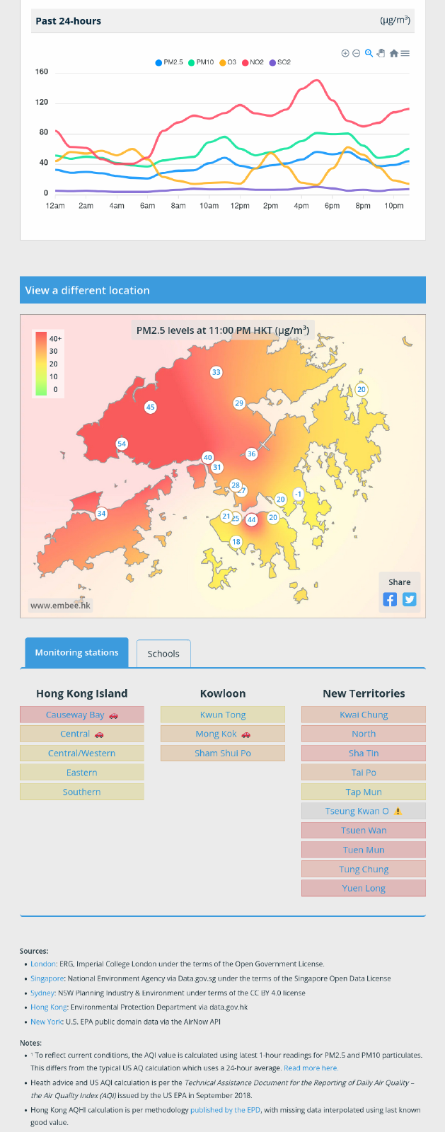 In addition to their main ecommerce sales site, I built a website that reports live air quality across Hong Kong at embee.hk/a/air-quality.