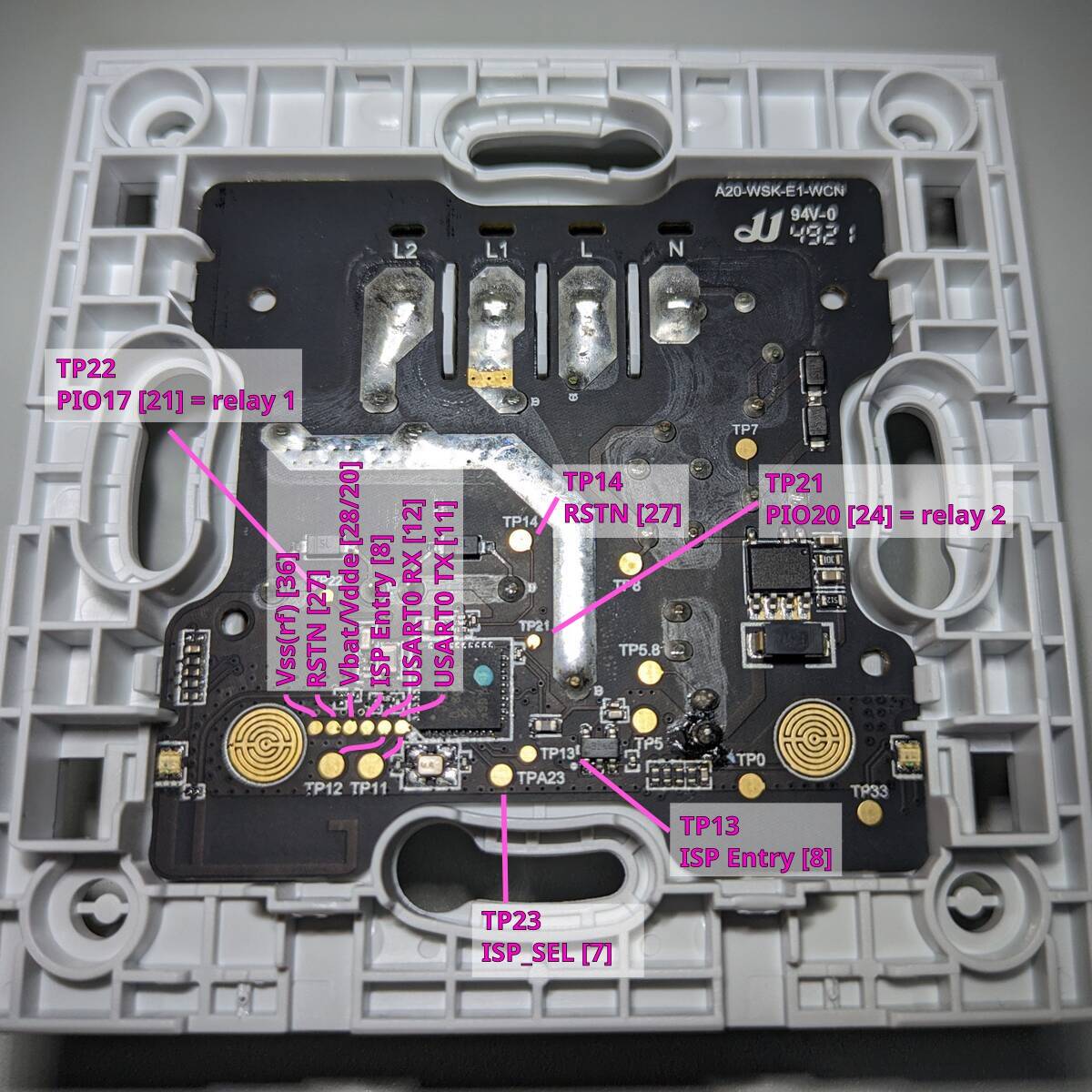 Confirm that the ISP write functionality is not lockedπ€.β- Reverse engineer the PCB to determine which GPIOs are used for the switches, relays, and indicator LEDs and how they are configured (i.e. active high/low, pullups etc.).