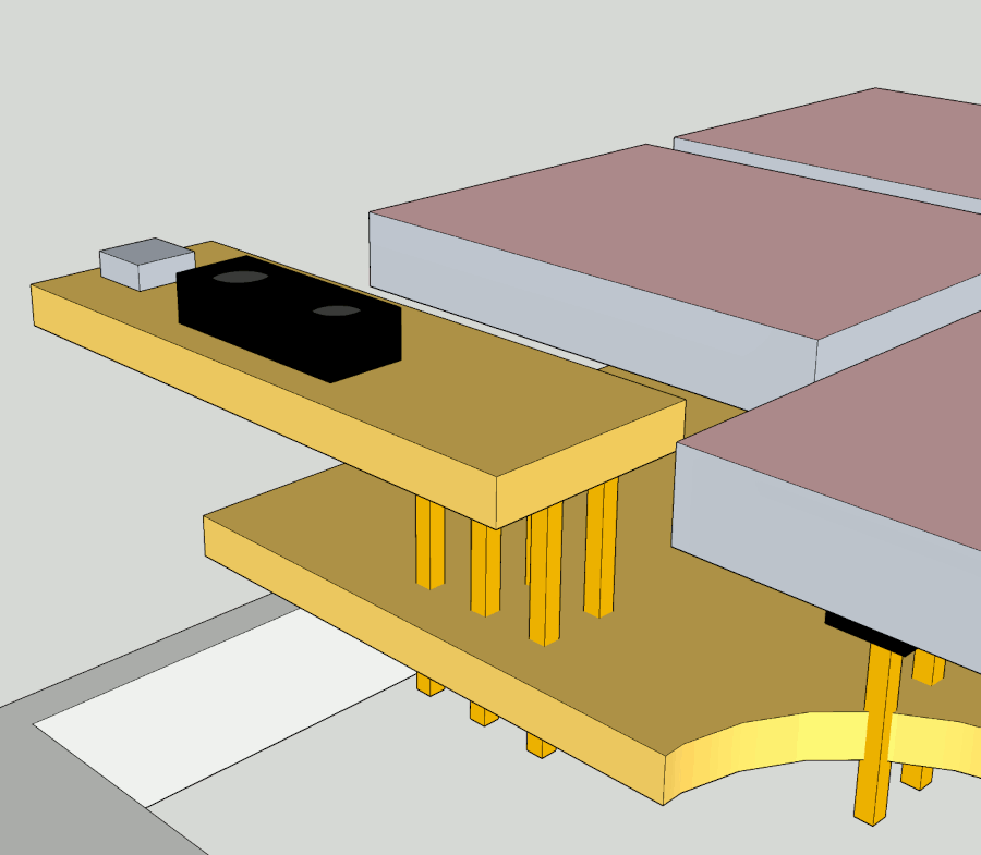 Unless we solder jumper wires directly to the BME280/VCNL4200 pads, these two requirements necessitate a second PCB containing these sensors to be attached to the main PCB (i.e. a daughterboard). If mounted on the main PCB, the height of other components (e.g. crystal) would result in the sensors sitting too far behind the facade. The daughterboard will be attached to the main PCB using a soldered 2x3 2.54mm pin header.