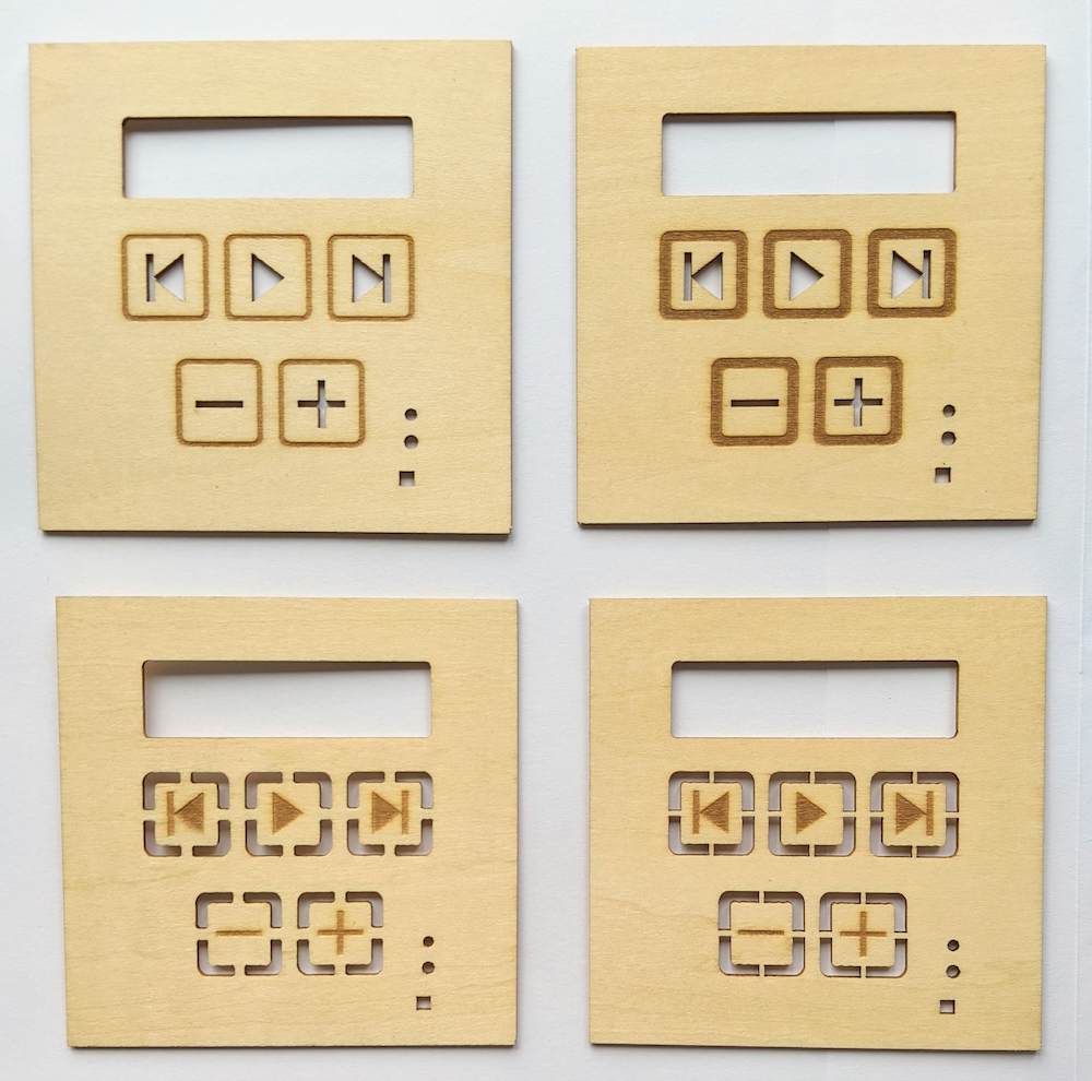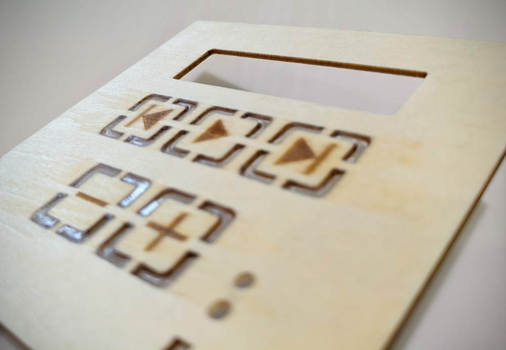 To get a professional looking finish at a reasonable cost, I’m using a thin, laser-etched wooden facade placed on top of a cheap electrical socket shell. A small white OLED screen will feature at the top, and capacitive touch sensors will be placed behind the wood for control.