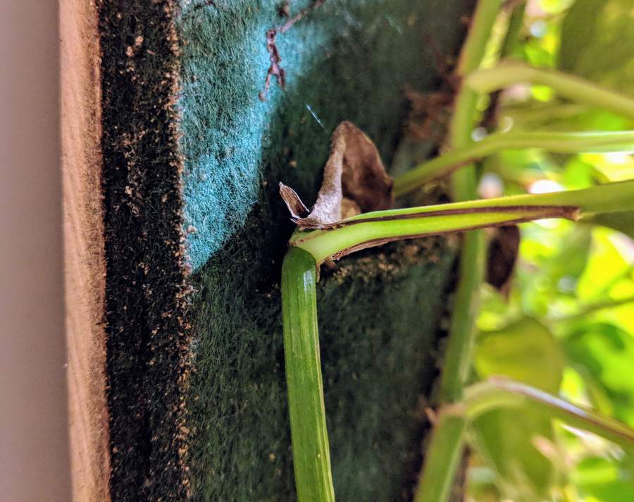 While healthy soils provide these elements, the plant wall has no soil. A typical hydroponic approach is to add the required nutrients to the water as required. In an effort to reduce required maintenance, I went for a natural alternative and populated the water trough with fish. Fish manure is chemically similar to other animal manures and is an effective fertilizer: