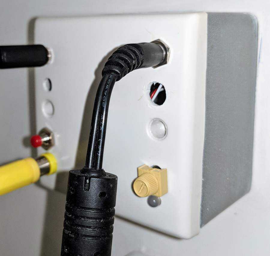 The board is mounted on the back of a standard electrical faceplate, which is then mounted on the wall behind the garden wall.