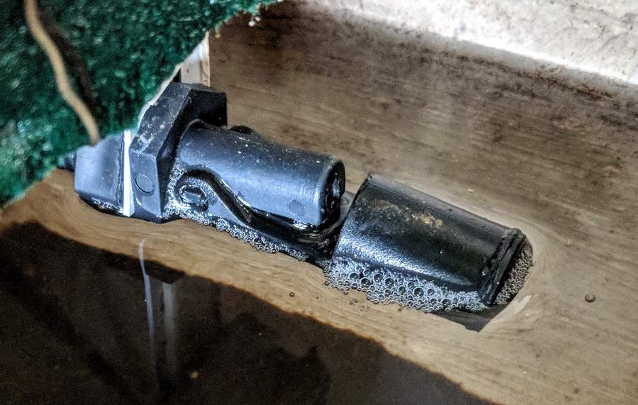 The water trough has an overflow drain to ensure my living room isn’t turned into a lake should things go haywire. With the remote possibility of this drain becoming blocked and the float sensor failing in a low state, the controller program will enter an error state if the sensor continues to measure low after a set number of consecutive fills.