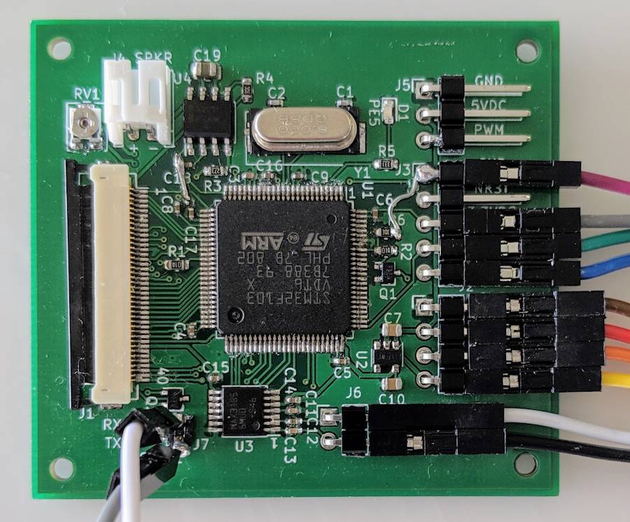 Despite having only one board to build, I ordered a stencil. I didn’t much fancy applying paste by hand for the 100-pin MCU package or the 40-pin TFT connector (both 0.5 mm pitch).