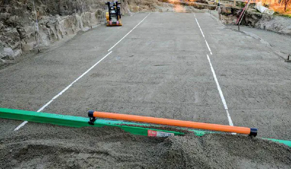 Popular base materials include sand, small screenings (i.e. gravel), and crusher dust. We’re using the latter. Crusher dust is crushed rock with a maximum size of 5mm (~1/5 inch). It’s fine, somewhat sand-like in texture, and like road base, compacts well to provide a hard, even surface.
