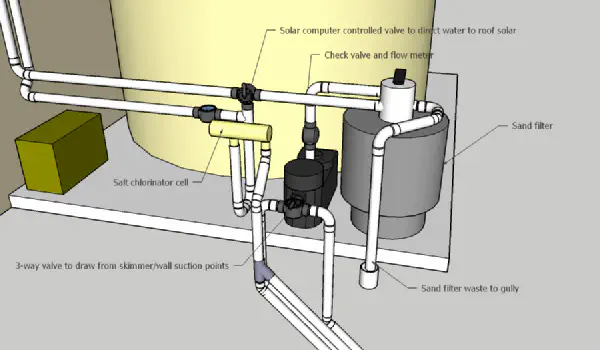 A pool’s plumbing system is designed to keep the water clean and hygienic. It consists of one or more suction fittings in the pool that draw water and debris in, a bunch of equipment located somewhere near the pool that processes the water, and one or more returns, where the clean water flows back in to the pool.