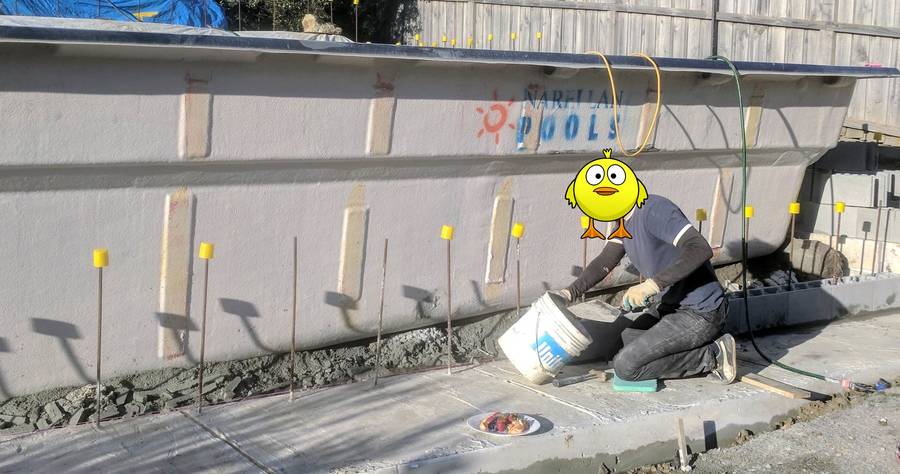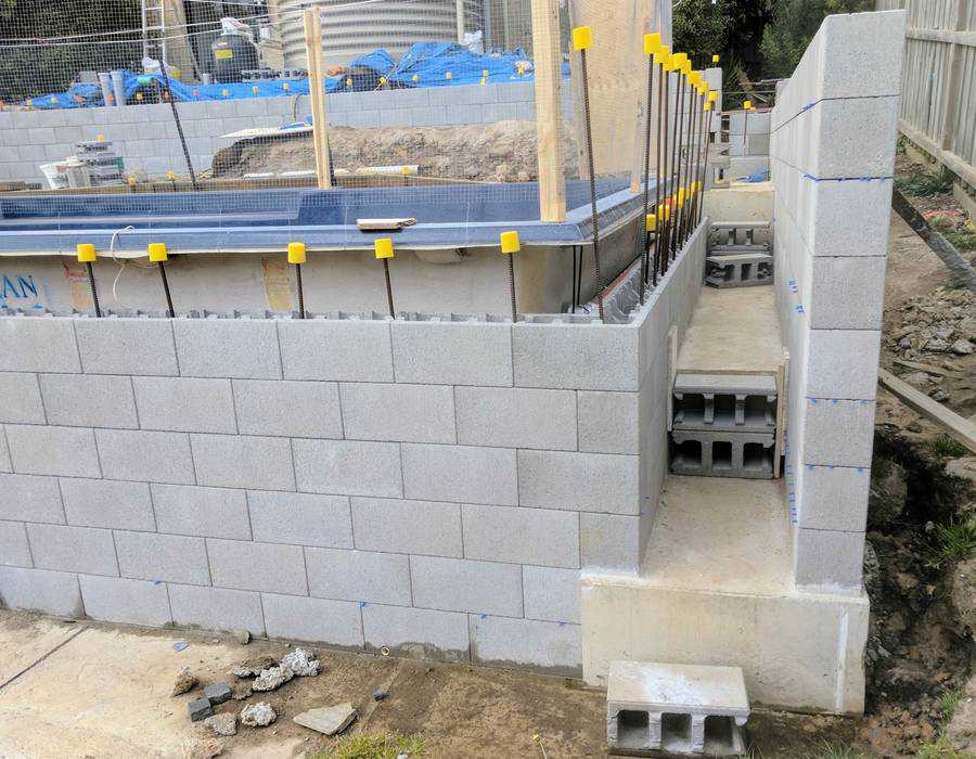 The top course is left until later as we need room to backfill the gap between the wall and the pool shell. But before backfilling, we need to fill the walls with concrete.