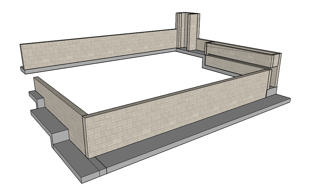 The walls are built using hollow concrete blocks, which will be filled with concrete, per the design discussed in a previous post.