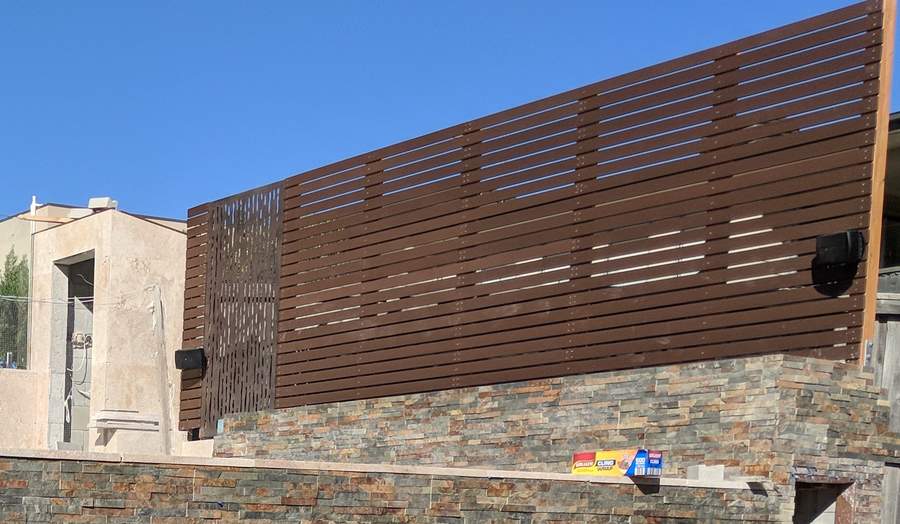 For maintenance reasons, we’re using a composite wood/recycled plastic product in lieu of timber. One consequence of this is that fence posts are required every 900mm, given the tendency of plastic based products to both expand and sag as the temperature rises.