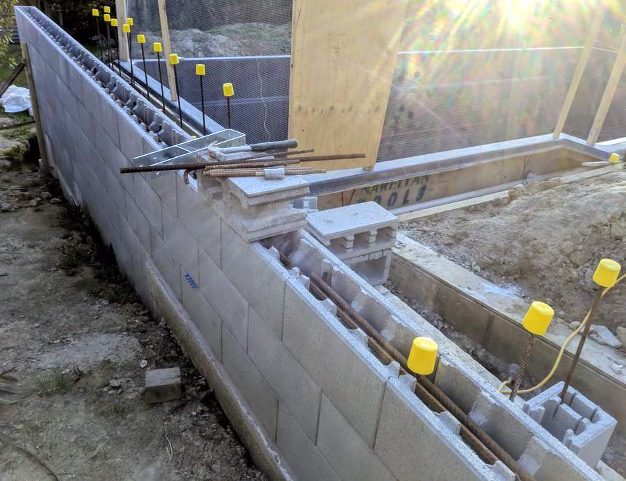The base wall for the privacy fence prior to filling the wall with concrete.