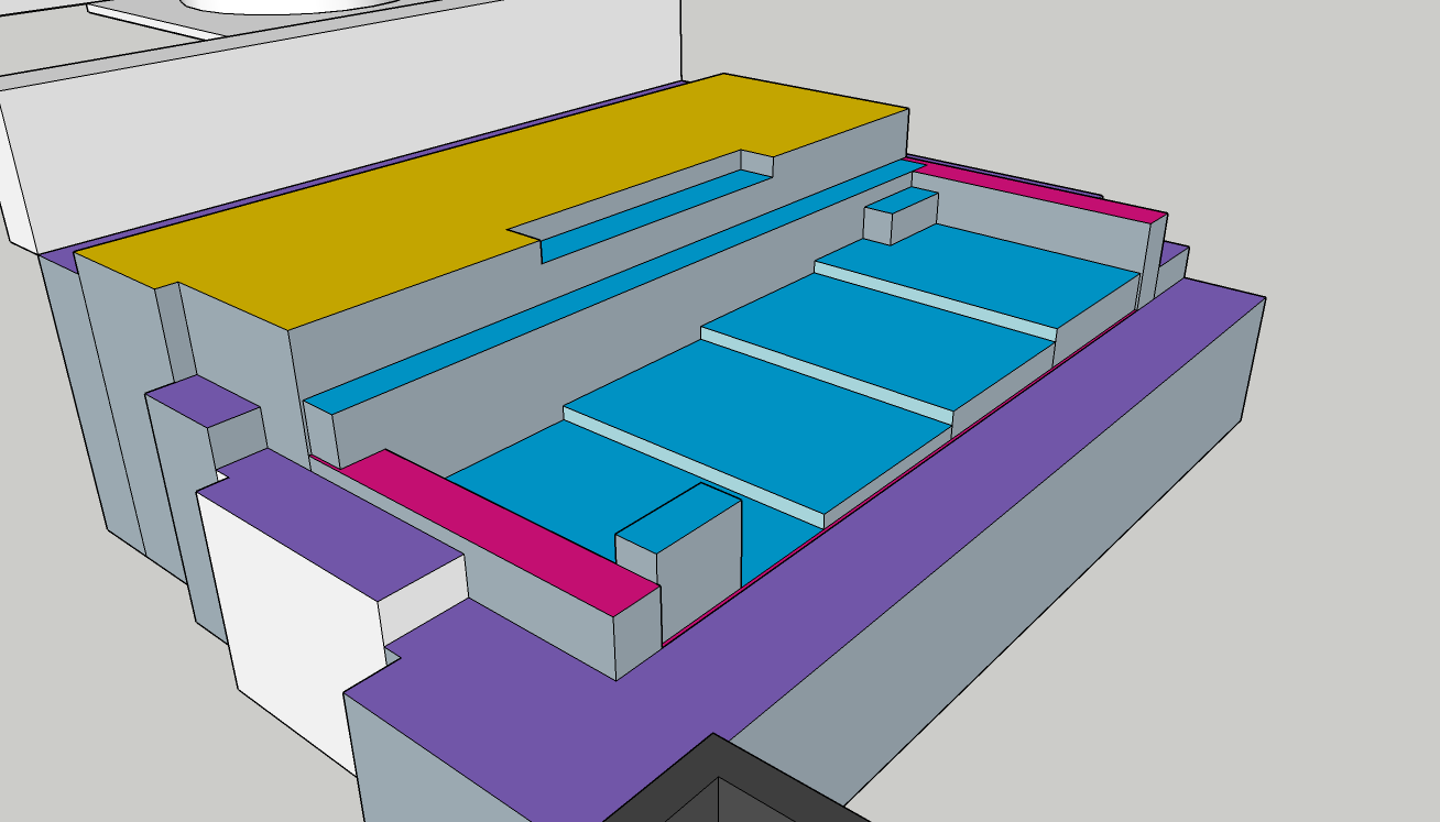 I also prepared a 3D representation to get a feel for what it should look like post-excavation. With tiered footings on three sides, a pool with various ledges, and the rear retaining wall, it looks more like a poorly executed game of Tetris than an excavation: