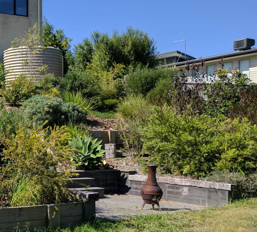 With a limited budget and tools, my plan is to mount my trusty Dewalt laser on the fence at the zero datum (i.e. top of the rainwater tank slab), and use what I believe is called a leveling staff to check the excavated elevation as I go. My leveling staff is just a long piece of wood with a tape measure stuck to it.