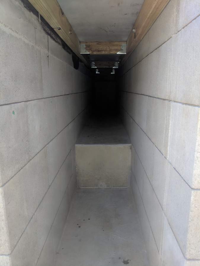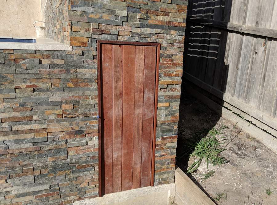 The cupboard below utilizes the wall footings as a floor and provides a very long (~4m) area that can be used to store pool cleaning equipment.