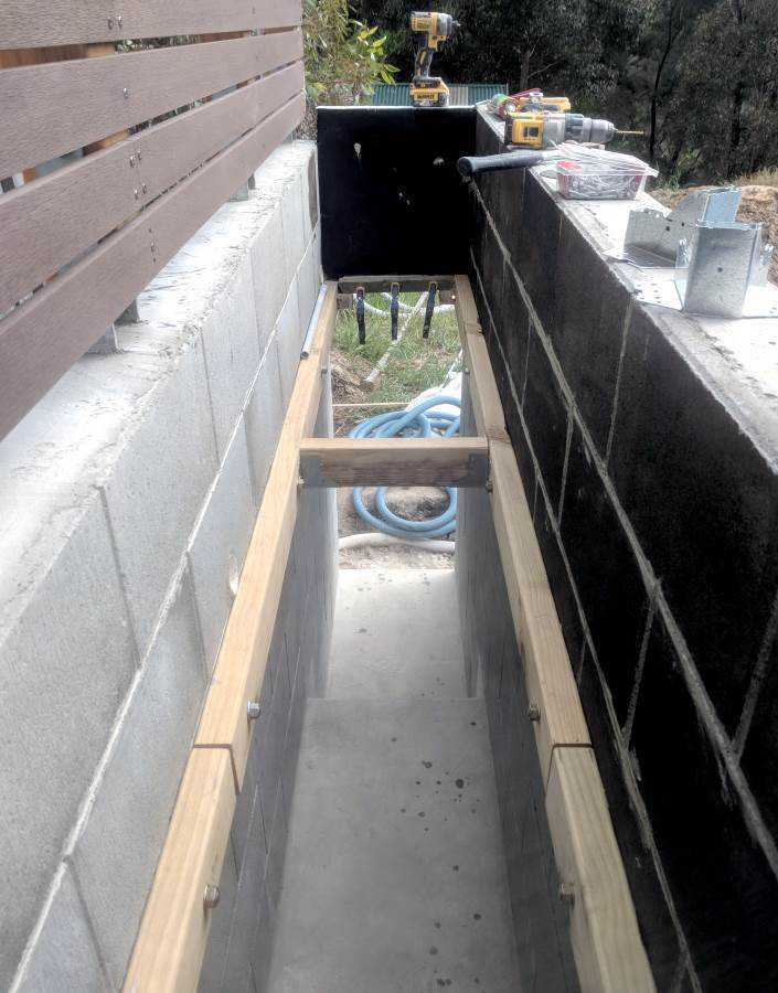 To ensure adequate drainage, 50mm weep holes were drilled through the rear wall at regular intervals.