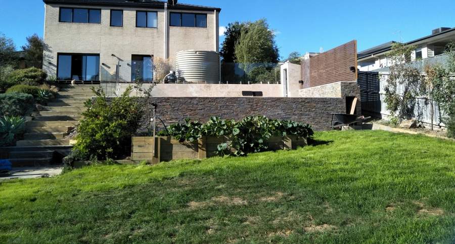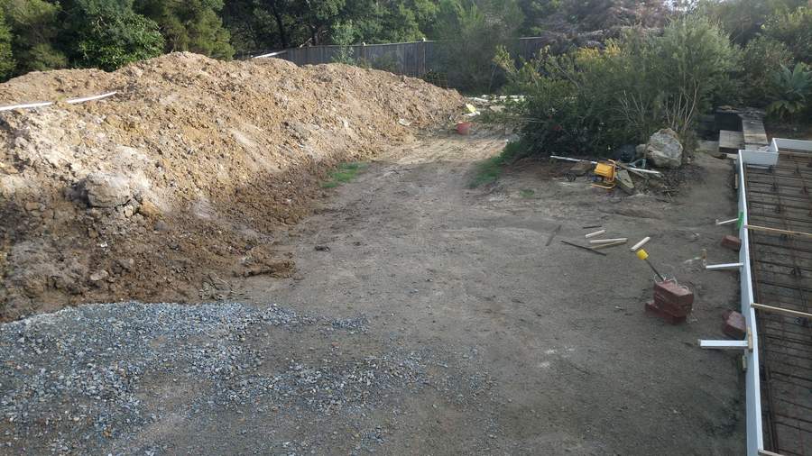 The process of excavating for the pool generated a lot of dirt. Having it removed would be extremely costly so we decided to use it to partially level the yard below the pool. This area is around 25 meters wide and 10 meters deep. The elevation difference from one side to the other is around 1.5 meters and from top to bottom around 1 meter.
