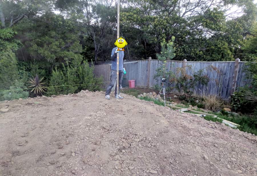 Using a laser level to get the correct slop on the final surface.