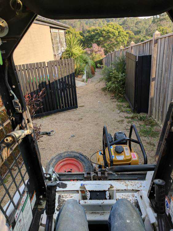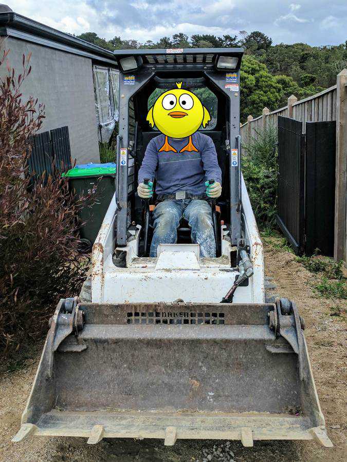 With the pool site a good 70 meters (~230 feet) from where the crusher dust would be delivered, I made the wise decision to rent a mini bobcat to move it: