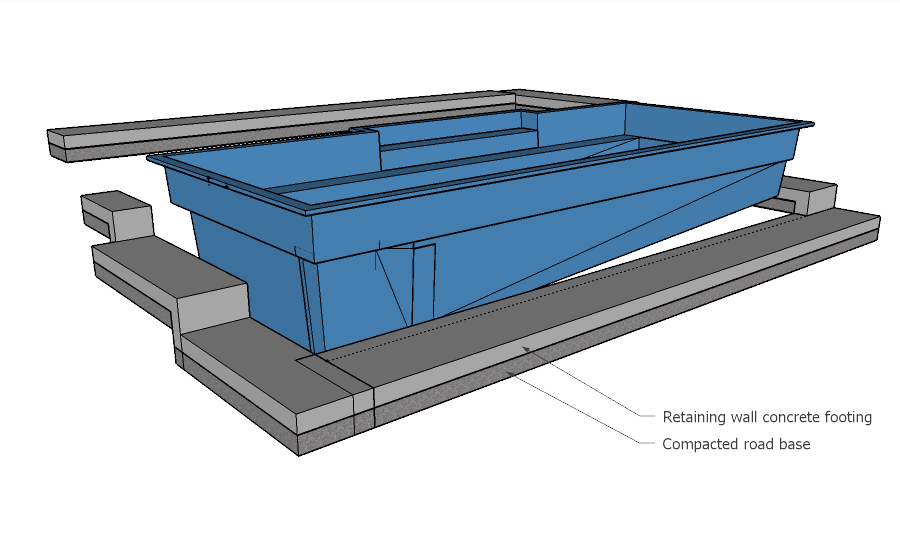 Building the forms themselves is just a question of cutting the right pieces and screwing it all together. Concrete is crazy heavy so we’ll also need to brace it and put in a bunch of pegs to stop it moving when the concrete is being poured and pushed around. The more challenging aspect is ensuring that the pieces are in the correct place as the concrete footing needs to match up exactly with the pool shell.
