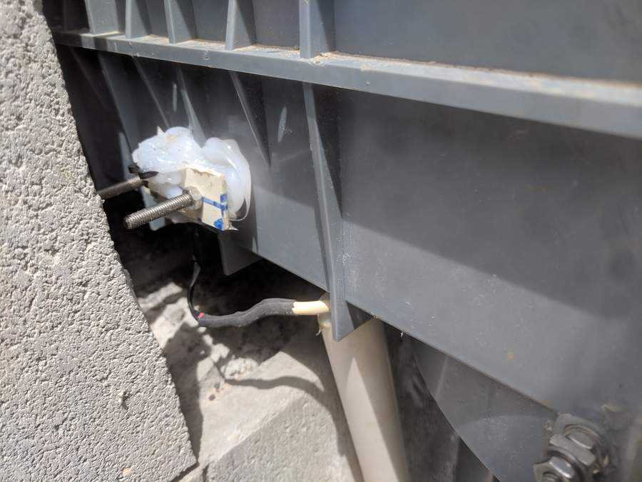 The sensor was connected to the equipment pad via shielded twisted pair running in a conduit buried next to the side retaining wall, along with the lighting conduits.